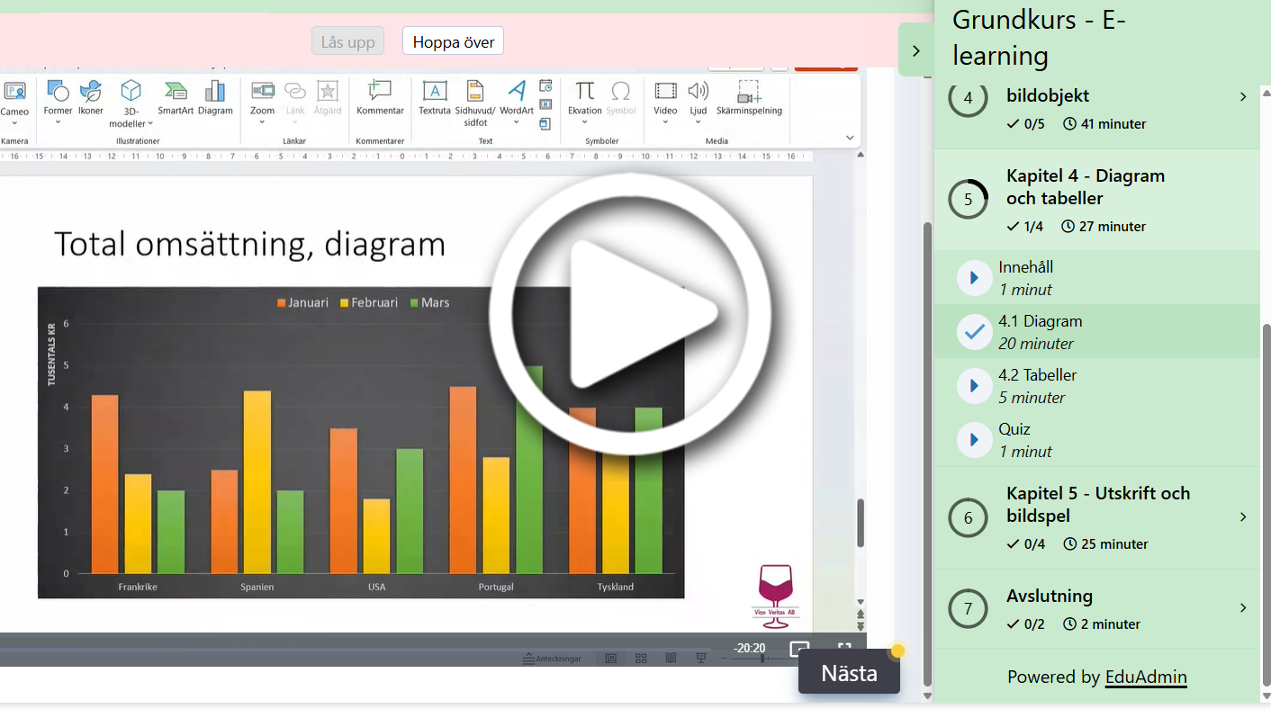 – På denna e-kurs får du lära dig grunderna i PowerPoint – från att hantera och formatera text till att skapa visuellt tilltalande presentationer med bilder, former, diagram och SmartArt.